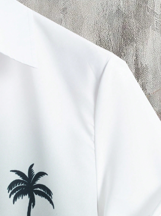 Escape to paradise with this Manfinity RSRT 2-piece summer set, featuring a stunning palm tree ombre print short sleeve shirt and matching shorts. The gradient design transitions seamlessly from deep to light tones, capturing the essence of tropical sunsets and vacation vibes. Crafted from lightweight, breathable fabric, this coordinated ensemble keeps you cool and stylish during beach getaways or casual summer outings. Step into effortless vacation mode with this essential, cozy outfit set.