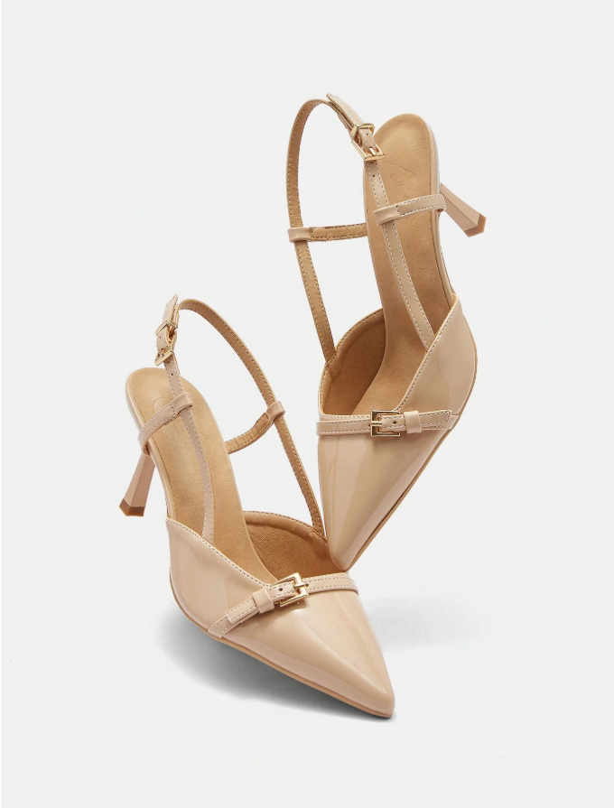 Elevate your professional and formal wardrobe with these MISSGUIDED patent leather pointed toe slingback pumps, featuring a timeless silhouette perfect for office, weddings, and business events. The sleek patent finish adds a polished touch, while the comfortable kitten heel provides lasting support for long days on your feet. The secure slingback strap ensures a customized, elegant fit that stays in place from meetings to celebrations. This classic pair combines sophisticated style with practical comfort for the modern career woman.