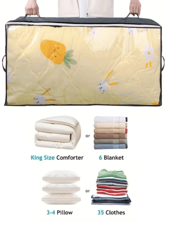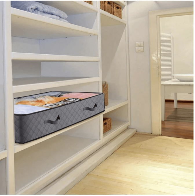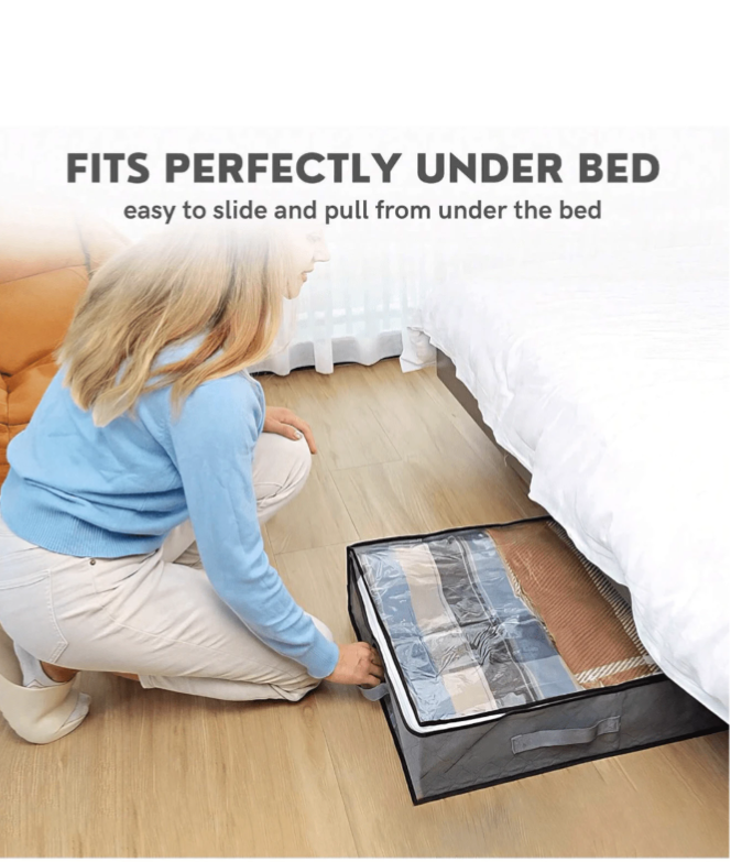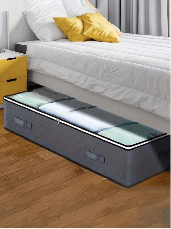 This Non-Woven Fabric Underbed Storage & Organizer Bag offers a smart, stylish, and space-saving solution for keeping your belongings neatly stored and easily accessible. Made from durable, moisture-proof non-woven fabric, it protects your items from dust, humidity, and damage, making it perfect for long-term storage in wardrobes or under the bed. Featuring a large-capacity interior, it functions as a versatile organizer for makeup, cosmetics, lipsticks, brushes, skincare products, phones, coins, and other small essentials, while also serving as an excellent travel storage box and holiday organizer. Ideal for organizing women’s clothing, winter wear, dresses, white T-shirts, black pants, and accessories, this multi-purpose storage solution is perfect for bedrooms, homes, and gifting occasions, making it an essential companion for everyday organization and festive storage needs.