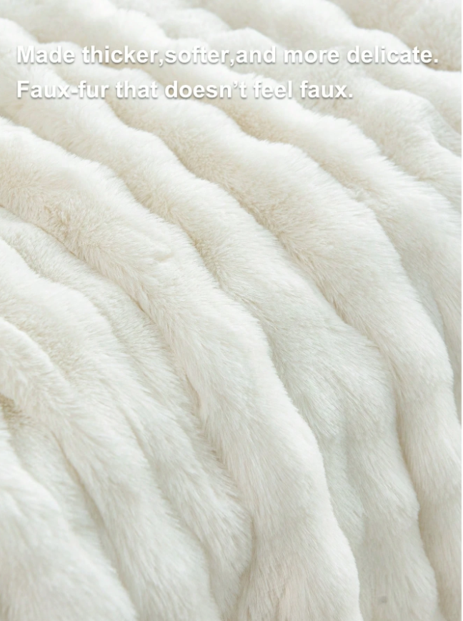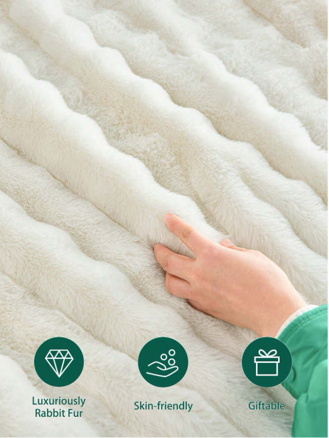 Indulge in unparalleled softness and timeless elegance with the White Comfortable Rabbit Fur Blanket. Expertly crafted from luxurious, high-density faux fur, this blanket mimics the sumptuous feel of real rabbit fur, offering a cloud-like, fluffy long pile that is irresistibly soft to the touch and provides exceptional warmth.