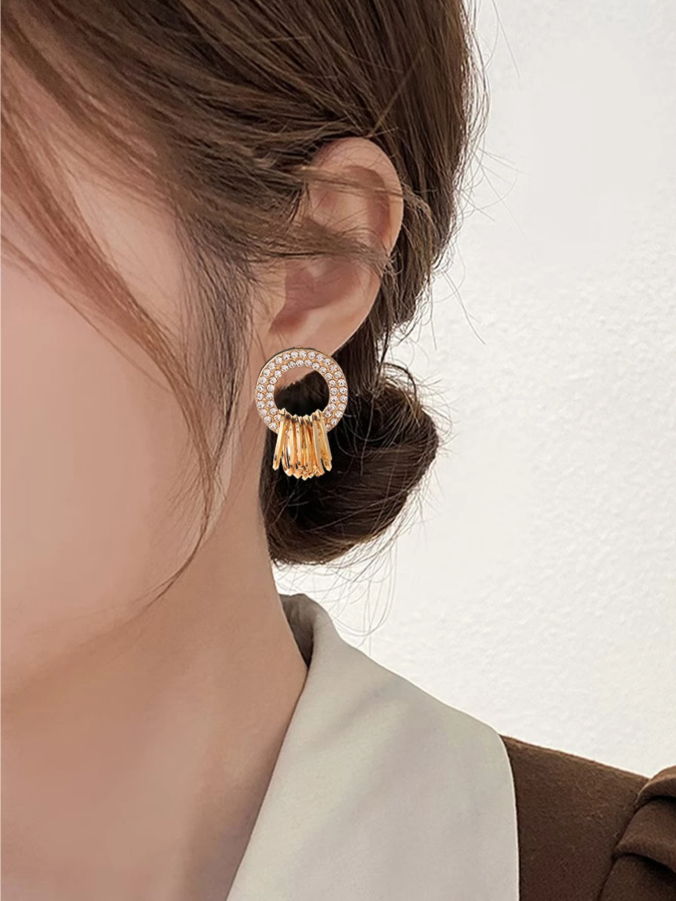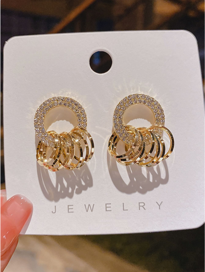 Rhinestone Circle Decor Earrings are a timeless and elegant accessory designed to add subtle sparkle and sophistication to any look. Featuring a classic circular design accented with shimmering rhinestones, these earrings reflect light beautifully, creating a refined and graceful appearance. Lightweight and comfortable for all-day wear, they effortlessly complement both casual outfits and formal attire. Perfect for daily wear, parties, weddings, and special occasions, these earrings bring a touch of glamour and charm to any jewelry collection.