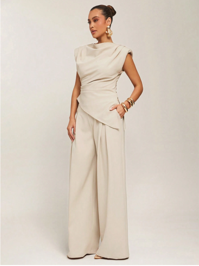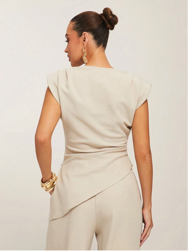 Silquee Women Solid Color Drape Asymmetric Hem Elegant Blouse