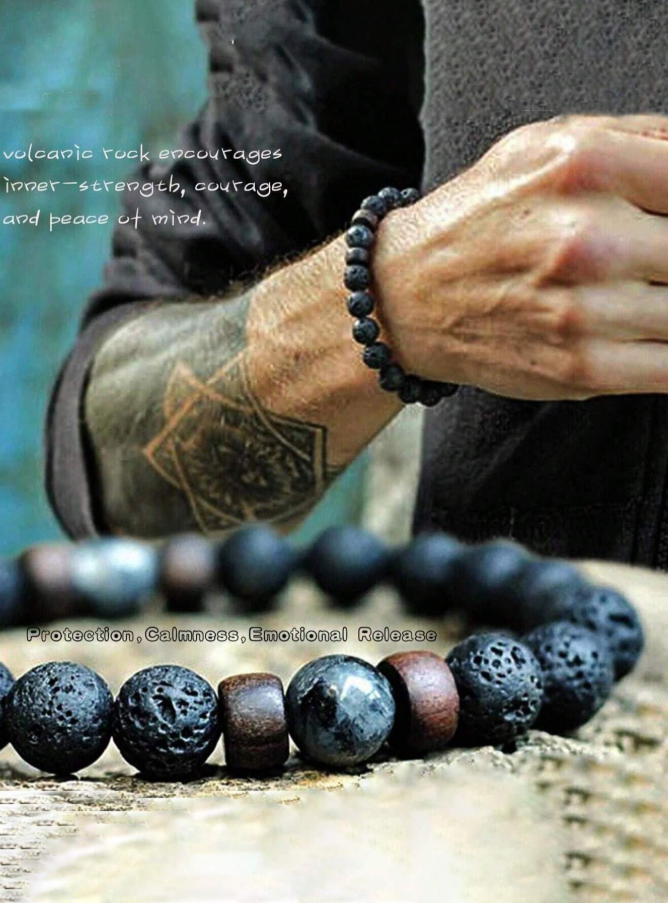Embrace natural energy with this volcanic stone bracelet, featuring porous lava beads and warm wooden accents designed for both men and women. The lava stones are believed to absorb negative energy while promoting grounding and relaxation, making them perfect for meditation and daily mindfulness. Simply add a drop of your favorite essential oil to the porous beads to enjoy aromatherapy throughout the day. This versatile energy bracelet combines earthy style with holistic wellness in one meaningful accessory.