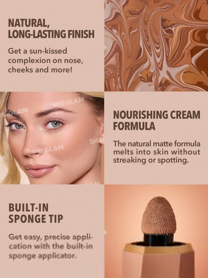The SHEGLAM Sun Beam Matte Liquid Bronzer (Golden Sun) is a highly pigmented gel-cream bronzer designed to create a warm, natural-looking contour. Its smooth non-greasy formula blends easily for a soft matte finish that enhances facial definition without looking heavy. Long-lasting and buildable, this liquid bronzer is perfect for everyday contouring and achieving a sun-kissed glow that stays fresh all day.