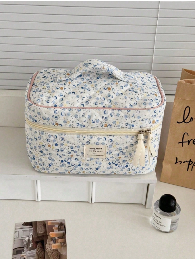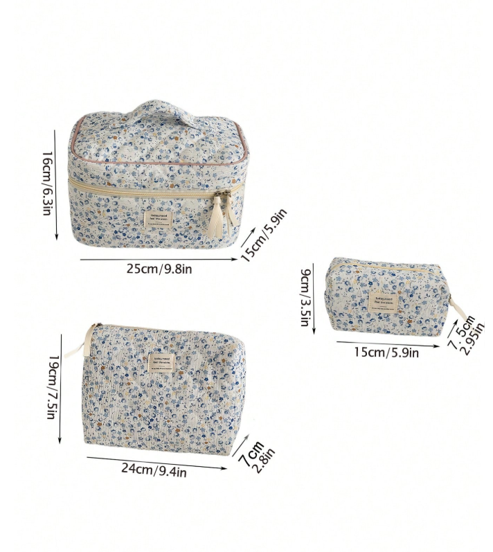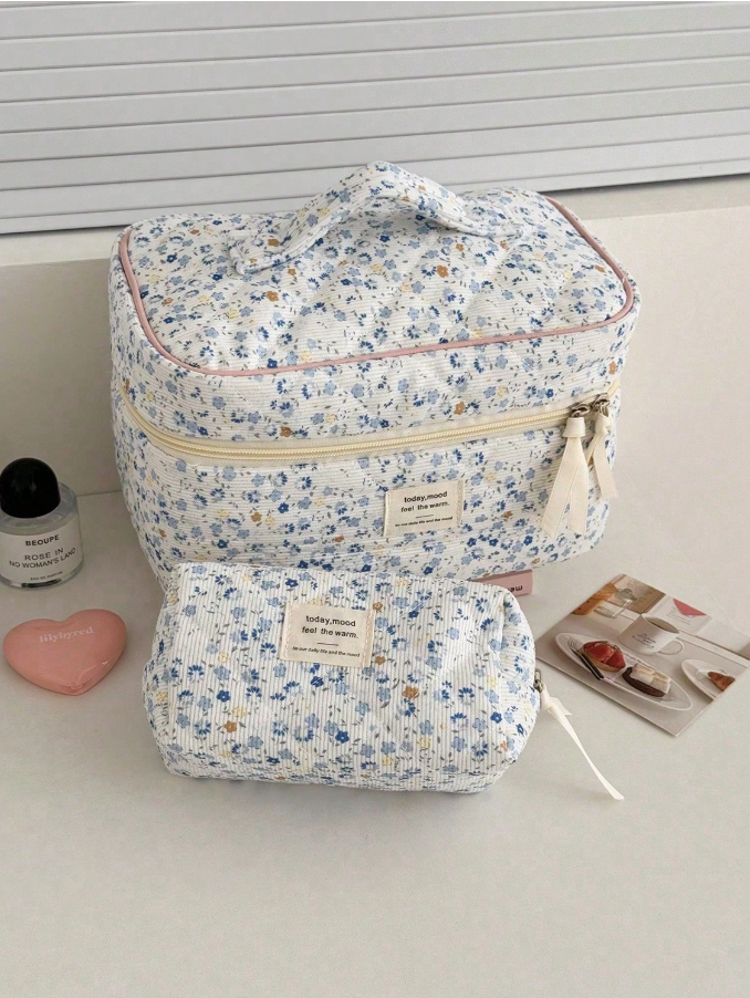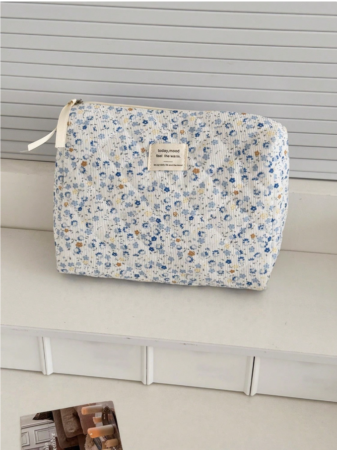 Organize your beauty essentials in style with this charming floral pattern corduroy makeup bag. This multi-functional cosmetic pouch features a secure zipper closure and a soft, durable texture, making it perfect for storing cosmetics, toiletries, or daily accessories. Its compact and portable design easily slips into any handbag or suitcase, ensuring your items stay tidy at home or on the go. This versatile organizer adds a touch of vintage elegance to your daily routine.