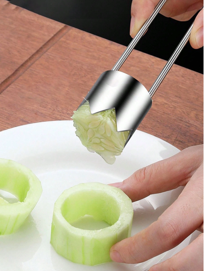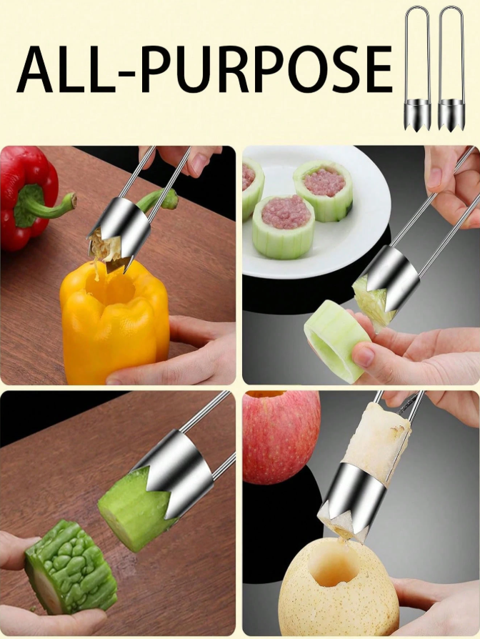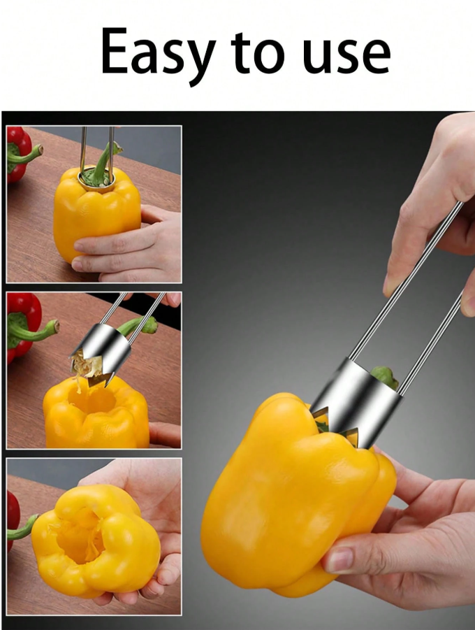 Simplify your meal prep with this stainless steel fruit and vegetable corer, designed to effortlessly remove seeds and cores from bell peppers, apples, pears, and more. The sharp, durable blade glides through produce smoothly, while the ergonomic handle ensures a comfortable, secure grip during use. Its compact size makes it easy to store, while the rust-resistant construction guarantees long-lasting performance. Perfect for home cooks seeking quick, precise preparation for salads, stuffings, and healthy snacks.