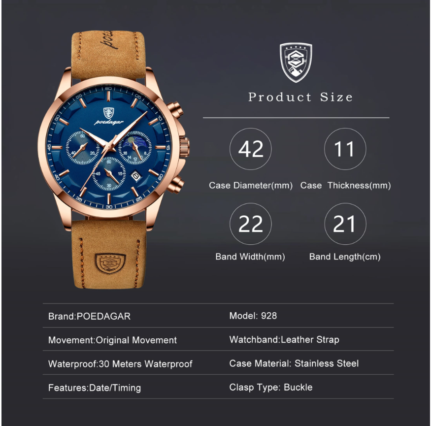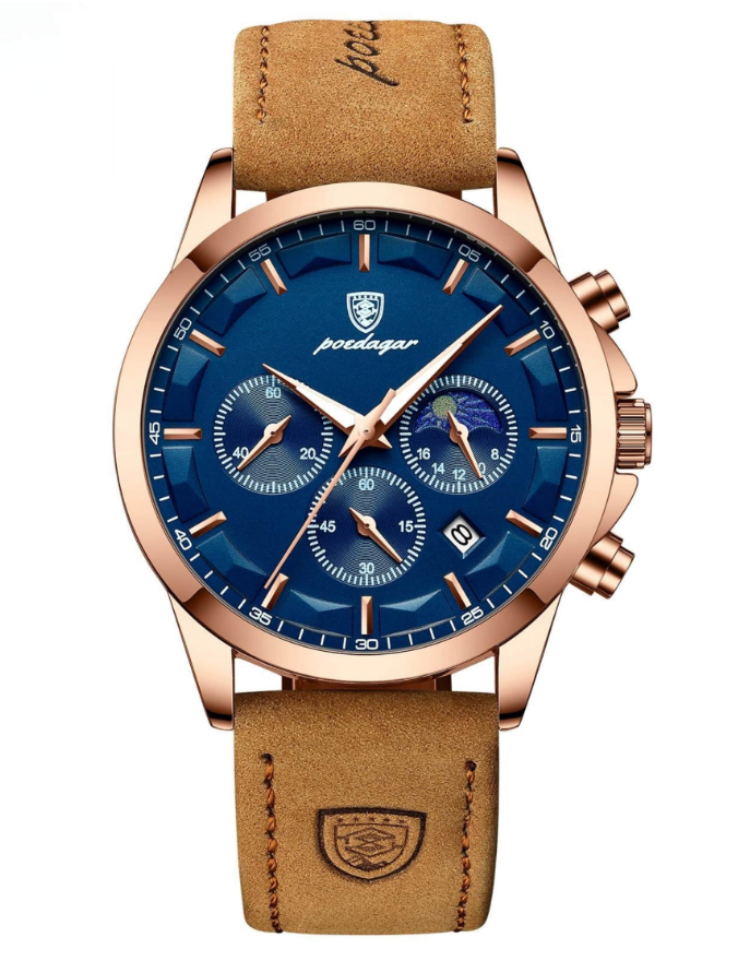 POEDAGAR True Chronograph ile hassasiyetin ve sağlam zarafetin özünü hediye edin; hem stil hem de kaliteye önem veren erkekler için ustalıkla tasarlanmış bir saat. Bu gerçek zaman ölçme cihazı, profesyonel işlevselliği cesur ve sofistike bir estetikle kusursuz bir şekilde birleştirerek her türlü girişim için seçkin bir aksesuar haline geliyor.