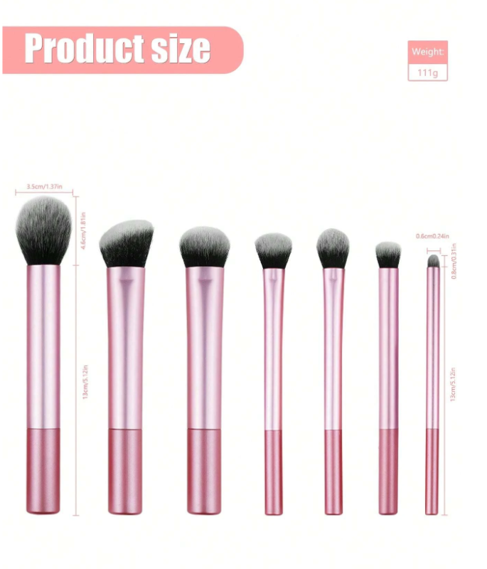 7 Parçalı Pembe Profesyonel Makyaj Fırça Seti ile kusursuz, profesyonel düzeyde bir uygulama elde edin. Bu kapsamlı ve seyahate uygun set, hem yeni başlayanlar hem de makyaj tutkunları için eksiksiz ve şık bir görünüm yaratmak üzere tasarlanmış tüm temel fırçaları (allık, pudra, kapatıcı ve göz farı fırçaları) içerir.