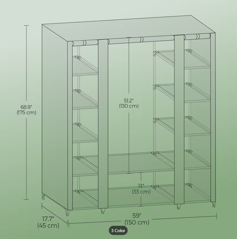 Offering a clutter-free alternative to a traditional closet, it maximizes space and keeps your wardrobe tidy. A practical and versatile addition to any home needing smart, temporary, or supplementary storage.