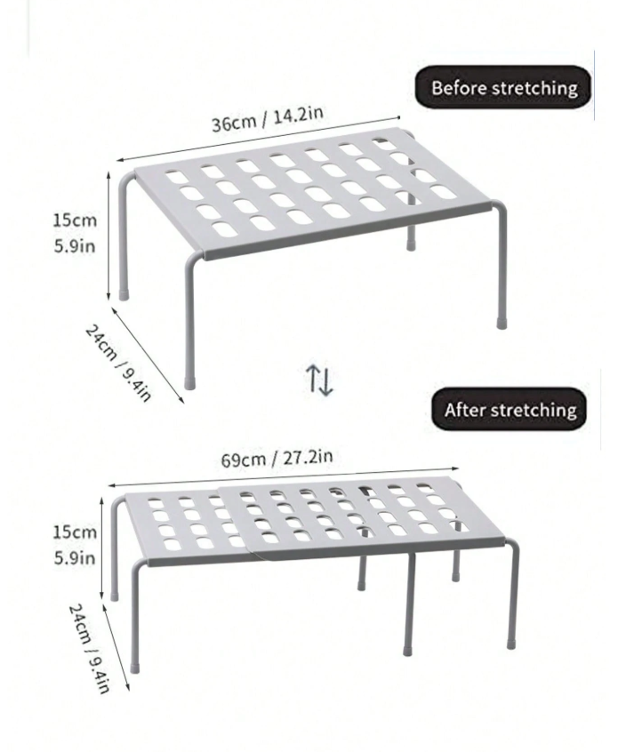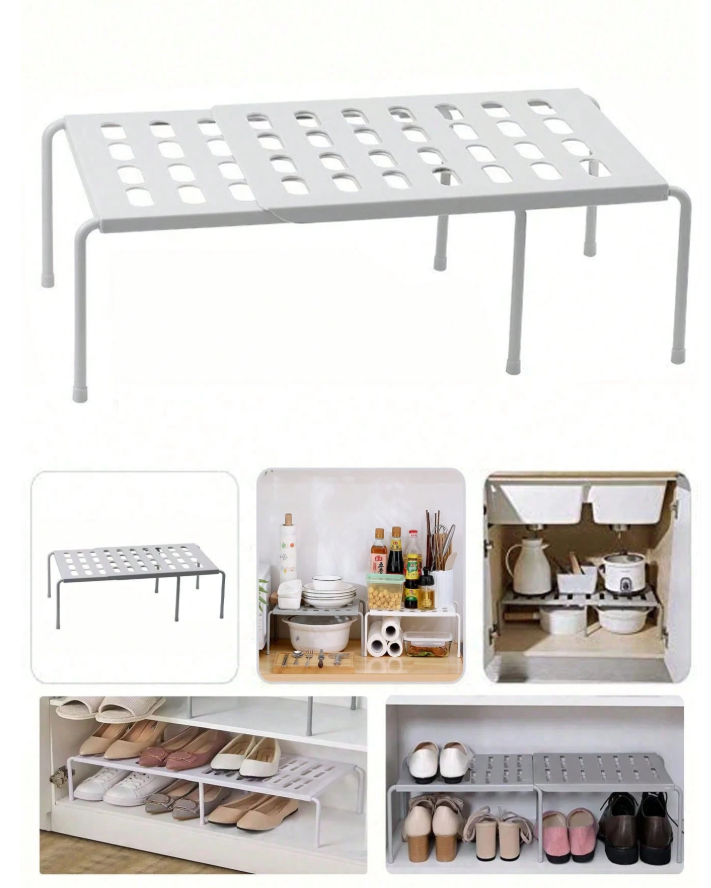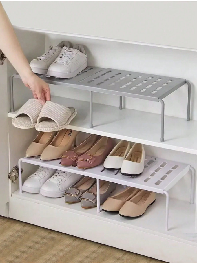 **Expandable Shoe Rack** is a **multi-functional, space-saving organizer** designed to fit various shoe sizes and closet dimensions. Its adjustable telescopic design allows for customized width expansion, making it ideal for maximizing wardrobe, entryway, or shelf space. The durable, lightweight construction securely holds sneakers, heels, flats, and even folded clothing or accessories. Perfect for creating a neat, accessible, and efficiently organized shoe collection without permanent installation.