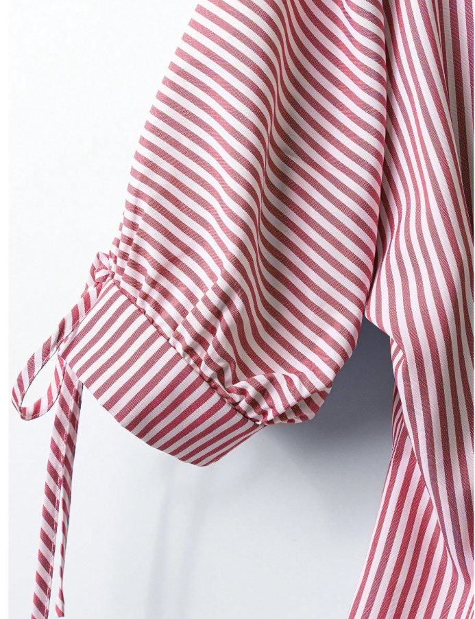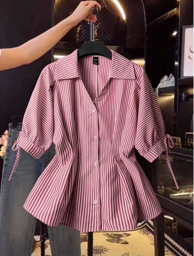 “Franclia Elegant Short Sleeve Blouse, Striped Shirt, Fitted Waist Puff Sleeve Top, Suitable For Women” için yorum yapan ilk kişi siz olun