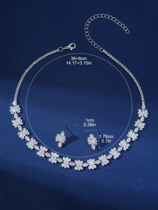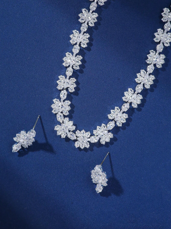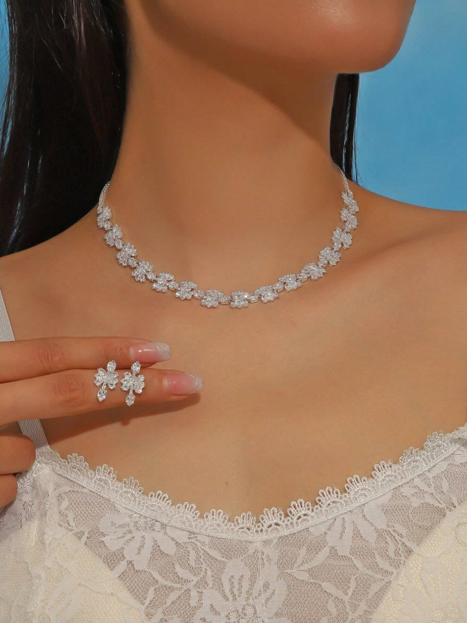 This luxurious and fashionable jewelry set features a stunning rhinestone necklace paired with matching earrings, designed to capture light and attention with every movement. The brilliant crystals are precision-set to maximize sparkle, creating a versatile ensemble that transitions effortlessly from bridal ceremonies and formal parties to everyday elegance. Whether adorning a wedding gown, adding glamour to cocktail attire, or elevating a simple blouse for daily wear, this exquisite set offers timeless sophistication that makes every woman feel radiant.
