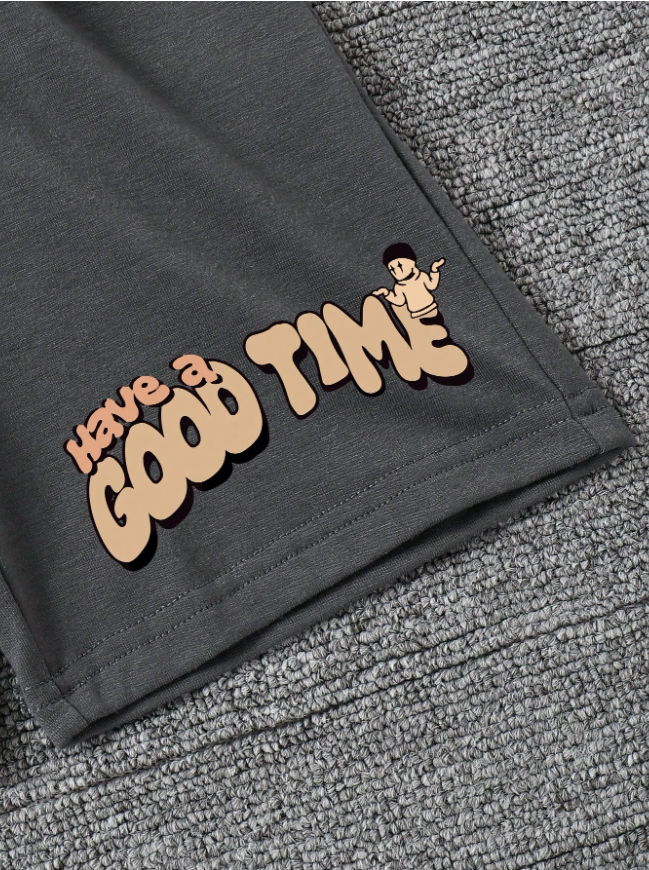 Genç Erkek Çocuklar İçin Çizgi Film Baskılı Yuvarlak Yaka Kısa Kollu Tişört ve Şort Takımı