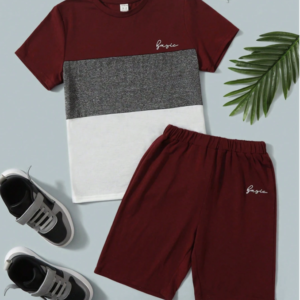 SHEIN Genç Erkek Çocuk Harf Baskılı Renk Bloklu Tişört ve Eşofman Şort Takımı