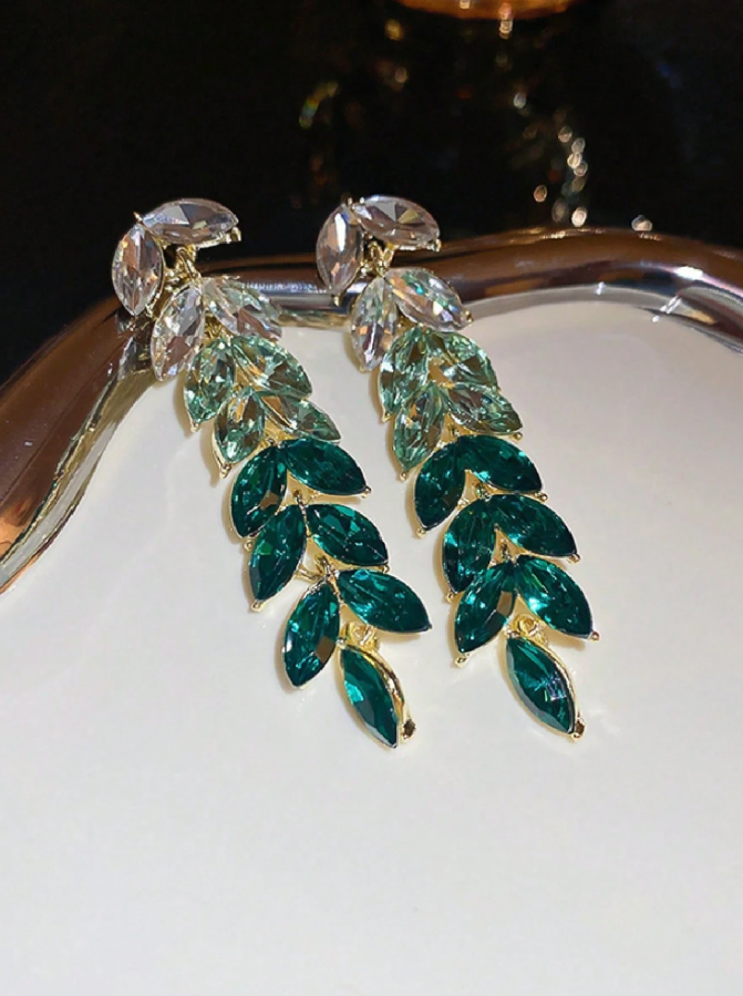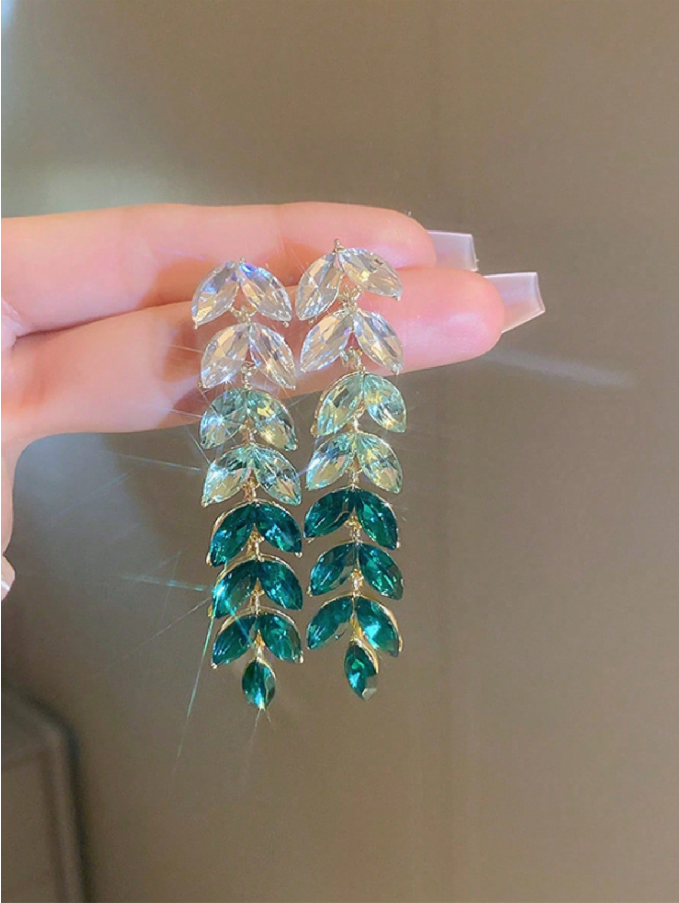 1 Pair Crystal Ombre Green Leaf Earrings