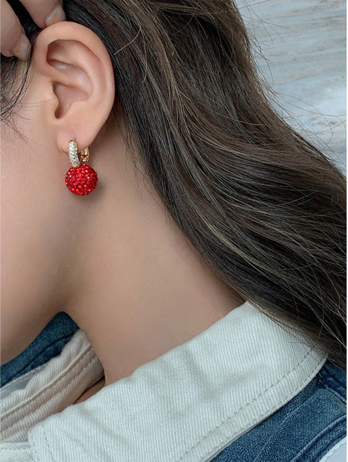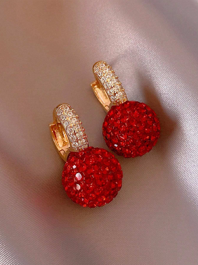 1 Pair Elegant Rhinestone Red Ball Pendant Earrings For Women are a striking blend of glamour and sophistication, designed to make every look shine. Featuring dazzling rhinestones paired with a bold red ball pendant, these earrings create a captivating contrast that adds depth and elegance to any outfit. Lightweight and comfortable for all-day wear, they are perfect for daily styling as well as special occasions such as parties, dinners, and celebrations. Their refined design brings confidence, charm, and a luxurious touch to every jewelry collection.