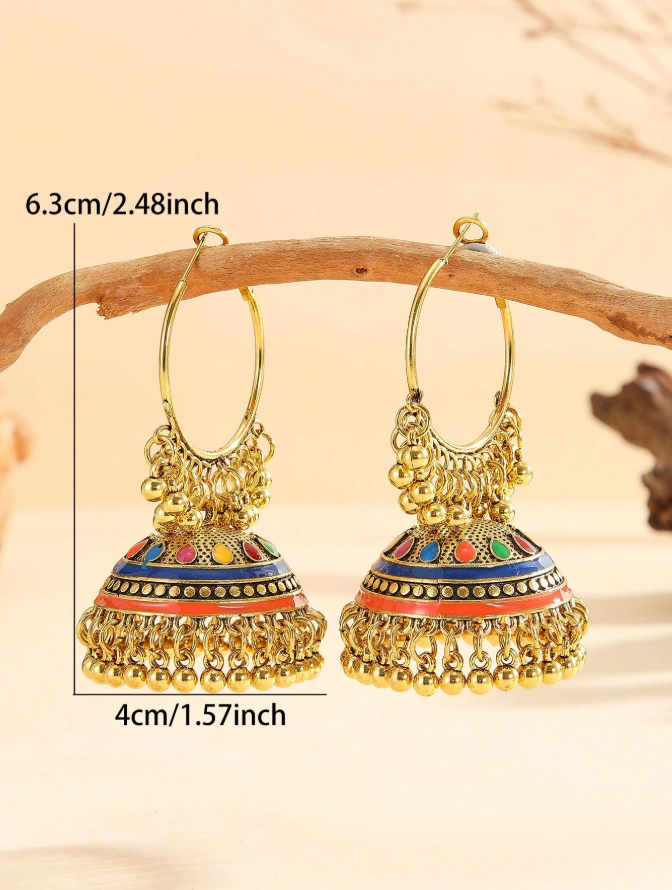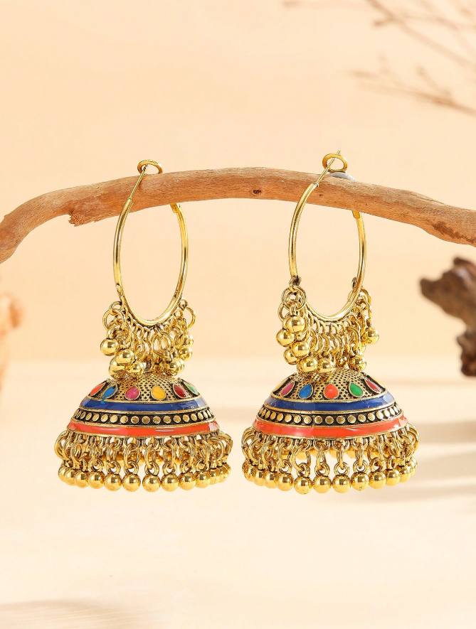 These exquisite 1 Pair Extra Large Hoop Earrings feature a stunning multicolor ombre effect that transitions beautifully through complementary hues, combined with vintage-style bell accents that catch light and create gentle movement with every step. The substantial oversized hoops make a bold statement while the ombre coloring adds artistic depth and visual interest, perfect for women who love unique, eye-catching accessories that stand out at parties, festivals, or special events.