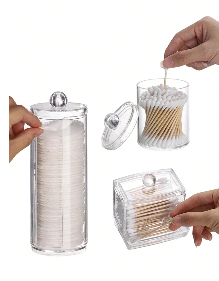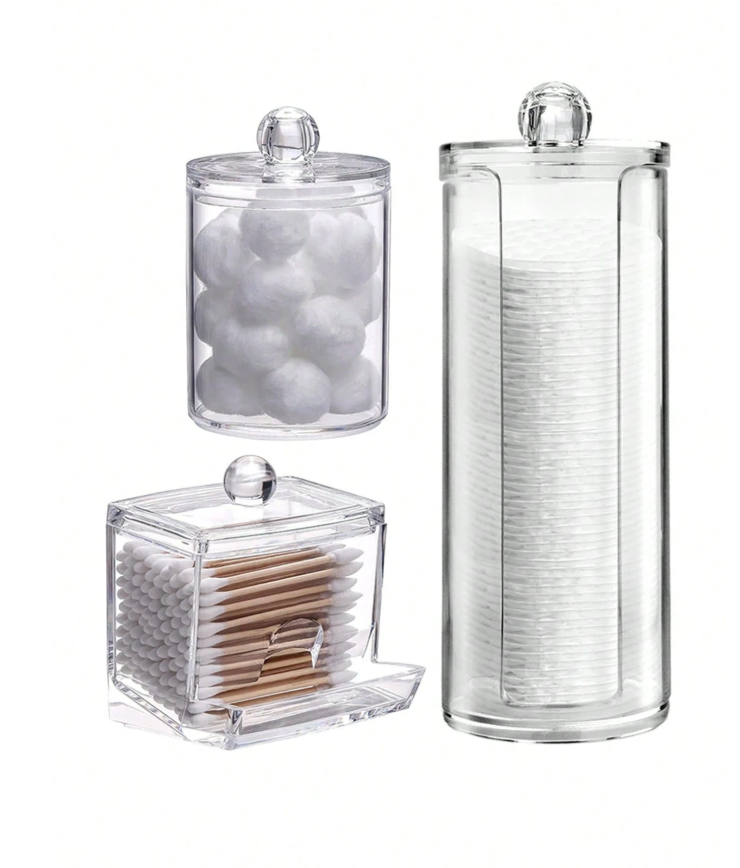 **1pc/3pcs Stylish Vanity Makeup Organizer Set** is an **elegant bathroom container** featuring chic round holders for cotton pads, Q-tips, and dental floss. Its sleek, minimalist design adds a touch of modern sophistication to any countertop or dressing table. Crafted from durable, easy-clean materials, it keeps daily essentials neatly arranged and instantly accessible. Perfect for creating a serene, clutter-free, and beautifully organized self-care space.