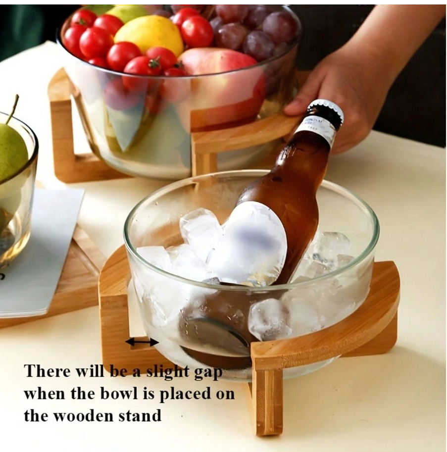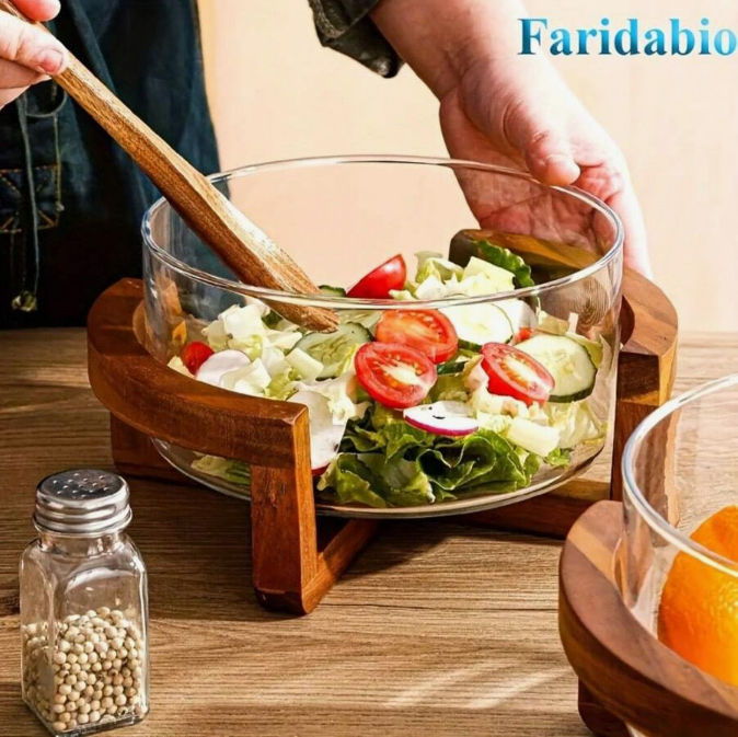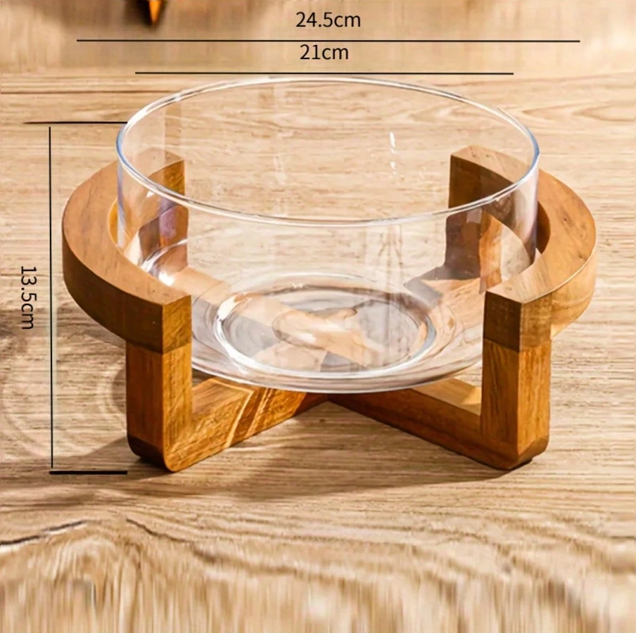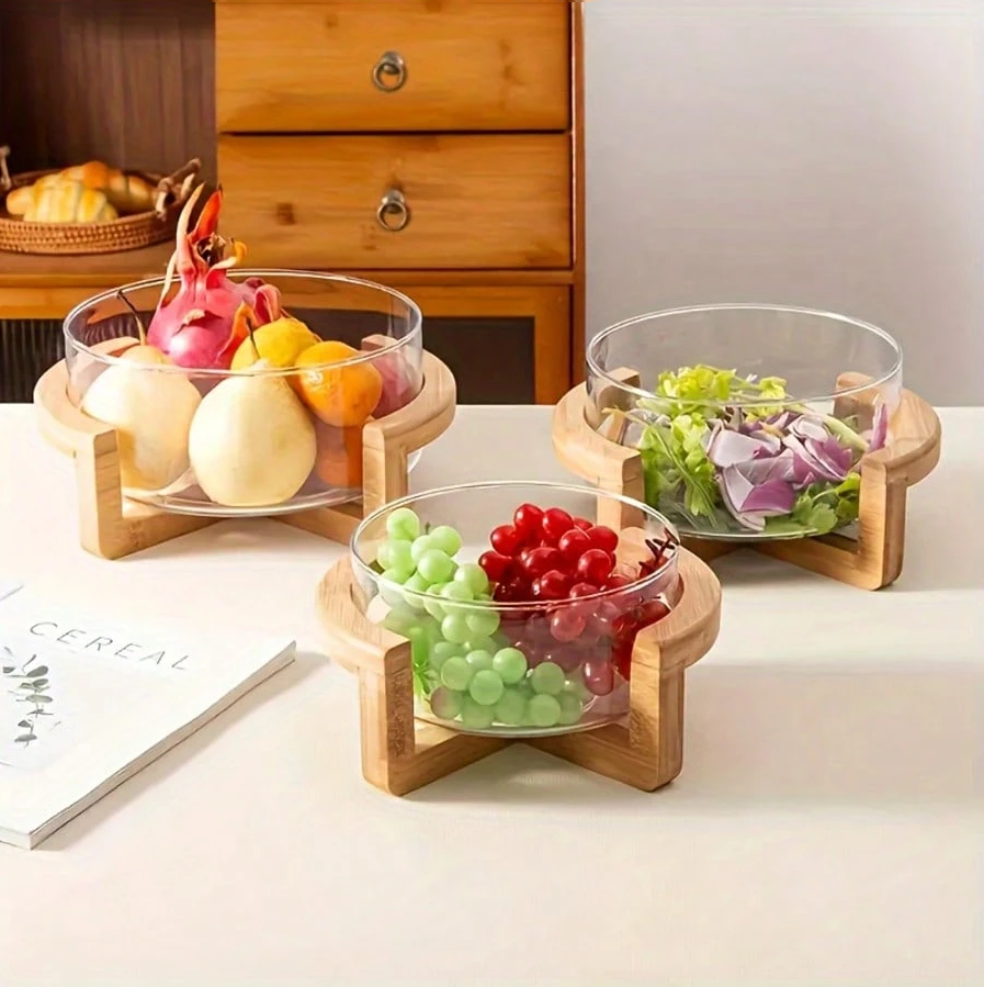 1pc Bamboo Base Glass Fruit/Salad Bowl is a stylish and versatile serving piece designed to elevate both everyday dining and special occasions. Crafted with a clear glass bowl supported by a natural bamboo base, it blends modern elegance with a warm, natural touch. Available in multiple sizes and specifications, this bowl is perfect for serving fruits, salads, snacks, and appetizers. Suitable for use in living rooms, dining tables, restaurants, buffets, and hotels, it offers durability, easy cleaning, and timeless appeal, making it a practical and decorative addition to any home or professional setting.