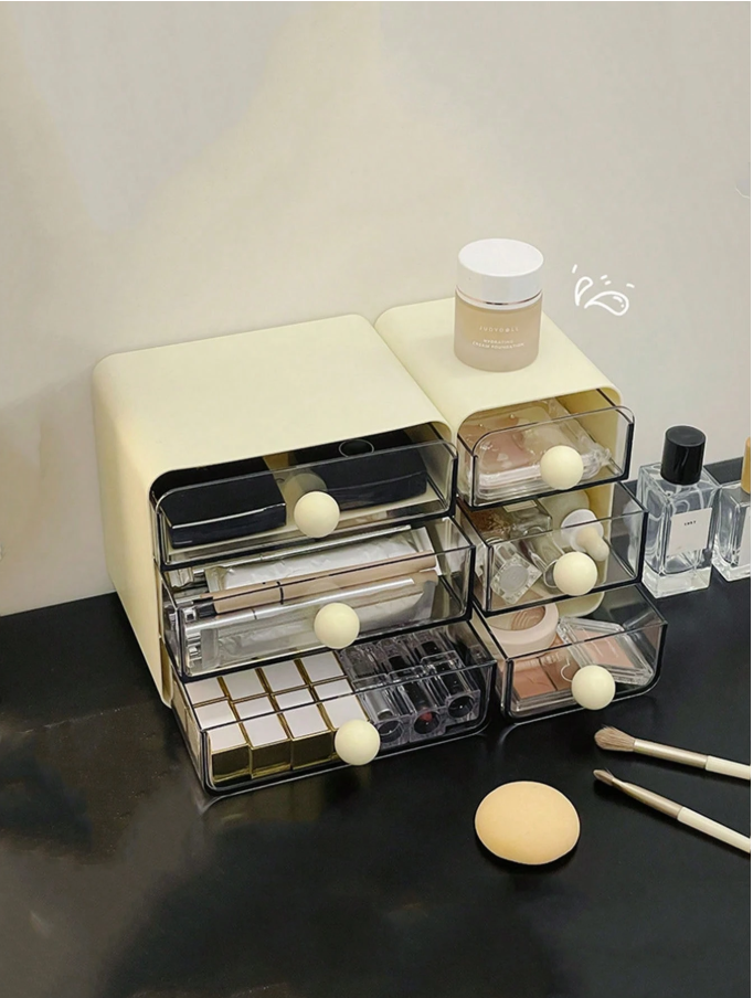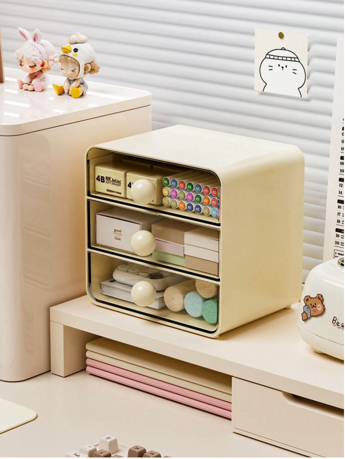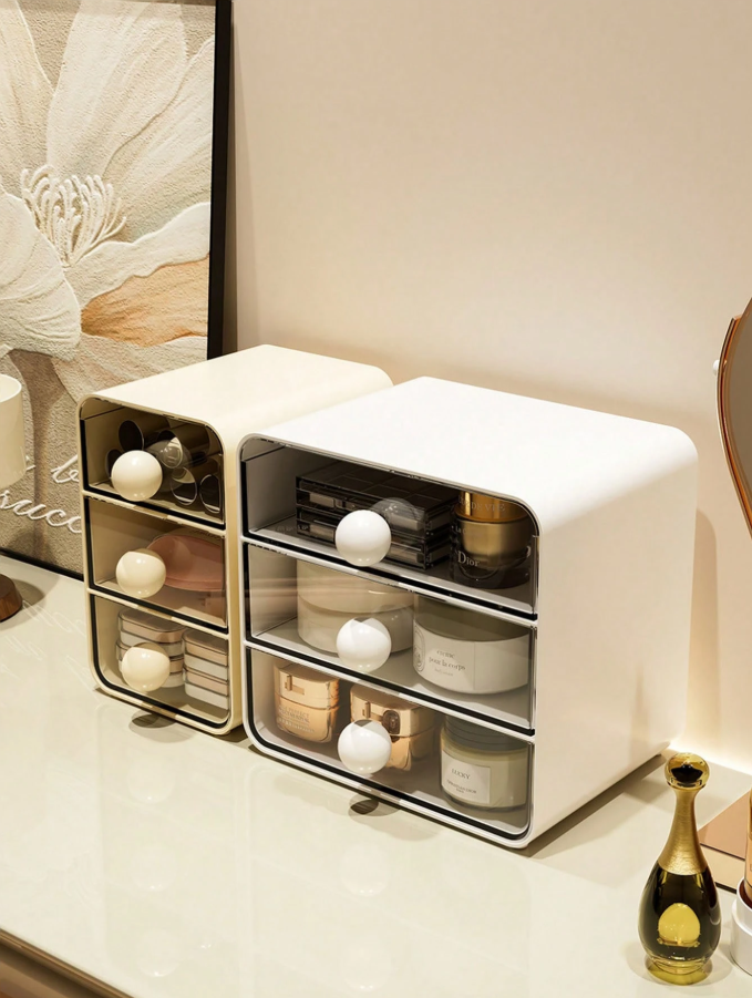 This Desktop Drawer Style Storage Box is a smart and stylish solution for organizing your everyday essentials with ease. Featuring a 3-layer design made from thick, durable transparent plastic, it allows you to neatly store and quickly access your cosmetics, office supplies, stationery, accessories, and personal items. The clear construction makes it easy to see contents at a glance while keeping your space clutter-free. Perfect for placement on a vanity, desk, study table, or office workspace.
