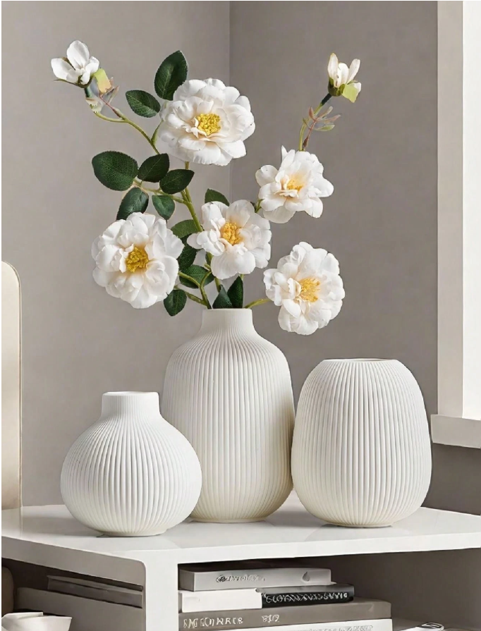 Introducing a statement of serene sophistication—this 1pc Large White Ceramic Vase embodies modern minimalist design with its clean lines, substantial form, and subtle textured finish. Crafted from high-quality ceramic, its smooth white surface and artisanal texture create a beautiful interplay of light and shadow, making it a captivating standalone sculpture even without flowers.