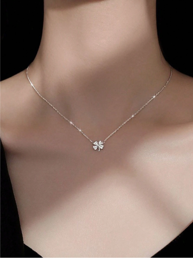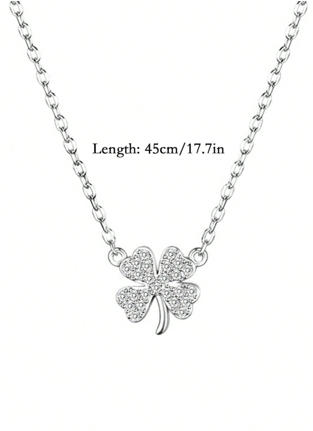 This charming silver-color necklace features a lucky clover design delicately inlaid with sparkling rhinestones, combining symbolic meaning with simple, elegant aesthetics. The versatile all-match style effortlessly complements any outfit, from casual t-shirts and sweaters to elegant dresses, making it a go-to accessory for daily wear or special occasions. Perfect for girls and young women who appreciate subtle sophistication, this piece adds a touch of shimmer and positivity to any look while serving as a thoughtful gift for birthdays, holidays, or just because.