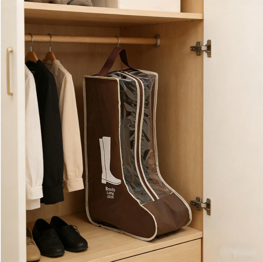**1PC Travel Shoe Bag** is a **dustproof protective organizer** designed to keep footwear clean and separated during travel or storage. Featuring a **sturdy handle for easy portability**, this lightweight bag securely holds boots, sneakers, or heels while preventing scuffs and dirt transfer. Its compact, foldable design makes it ideal for suitcases, gym bags, or closets. Perfect for maintaining shoe hygiene and organization on the go.