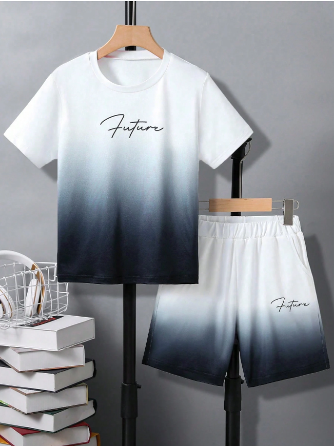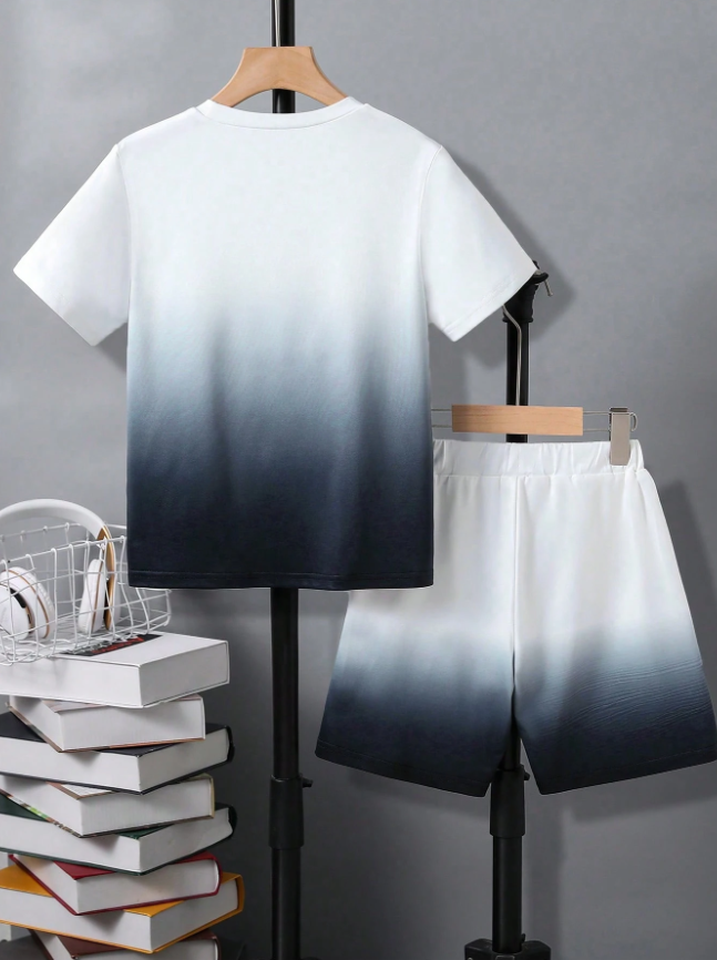 Bu 2 parçalı genç erkek çocuk günlük takımıyla, havalı ve uyumlu rahatlığın zirvesine ulaşın. Takım, dinamik degrade tasarımlı ve cesur harf baskılı, trend bir kısa kollu tişört ile uyumlu düz renk şorttan oluşuyor; bu da hem derli toplu hem de zahmetsizce rahat bir görünüm sağlıyor.