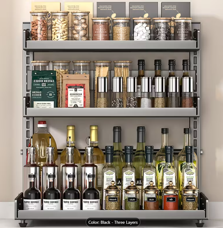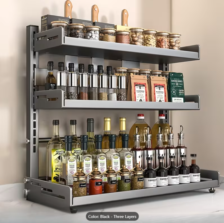 Pişirme alanınızı düzenleyin ve temel malzemeleri elinizin altında tutun. Bu çok fonksiyonlu raf, dağınıklığı azaltır ve mutfağınıza verimli ve düzenli bir düzen getirerek hazırlık süresini daha hızlı ve keyifli hale getirir.