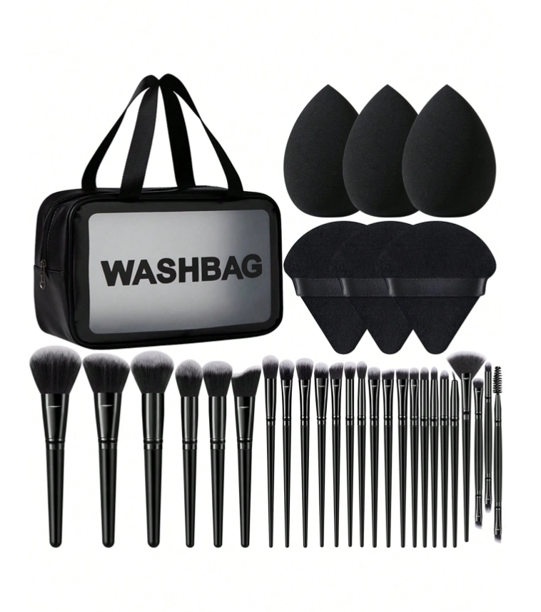 Achieve flawless makeup application with this comprehensive 32-piece makeup tools set, featuring 25 professional-grade brushes for every step of your beauty routine. From foundation and eyeshadow to blending and contouring, each brush is designed with soft, durable bristles for seamless, streak-free application. The set also includes a multi-functional zipper toiletry and cosmetic bag, keeping your tools organized, protected, and portable for travel or daily use.