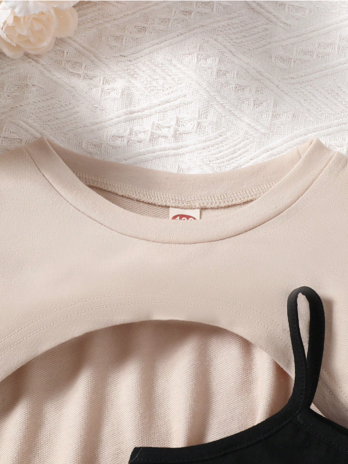 Bu şık ve çok yönlü kıyafet, ilkbahar okul sezonu için mükemmeldir. Bu büyüleyici set, uzun kollu bir sweatshirt şal, modaya uygun harf baskılı bir askılı bluz ve güzel tasarlanmış pileli bir etek içerir ve farklı durumlar için birden fazla stil seçeneği sunar. Yumuşak ve nefes alabilen kumaştan üretilen bu set, gün boyu konfor sağlarken, genç kızınızın okulda, aile toplantılarında veya gündelik gezilerde şık ve kendine güvenli görünmesini sağlar.
