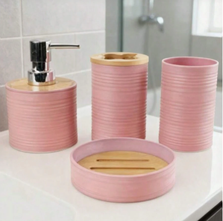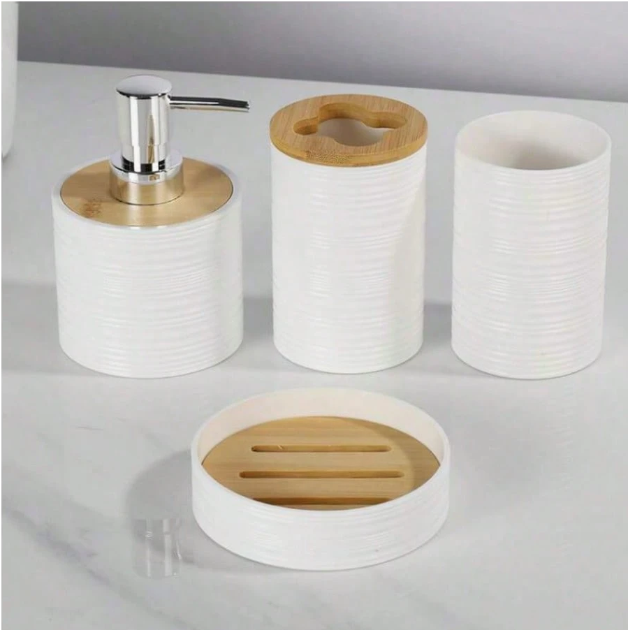 **4 Pieces Bathroom Accessories Set** is a **modern bath collection** designed to complete your space with coordinated elegance. This set includes essential bathroom items crafted from durable, easy-clean materials with sleek, contemporary styling. Each piece complements the others for a cohesive, polished look that elevates daily routines. Perfect for creating a streamlined, organized, and stylishly cohesive bathroom aesthetic.