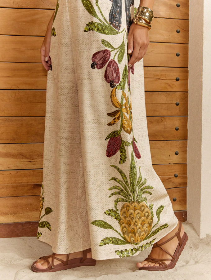 This jumpsuit is pure fast-fashion fantasy—promising a “tropical” and “sexy” vibe but delivering a cheap, poorly executed reality. The deep V-neck will be awkwardly cut, the synthetic fabric will be unforgiving and static-prone, and the bold print will likely be a low-resolution, garish mess. It’s designed for a single, attention-grabbing photo op, sacrificing both comfort and any semblance of tailoring for disposable, trend-chasing appeal.