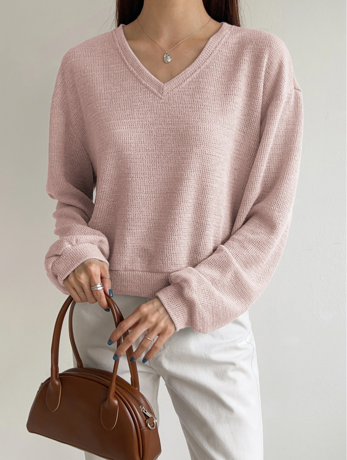 Zarif Şıklık: Narin bebek pembesi rengi ve ribana örgü detayları, günlük giyime sofistike bir dokunuş katıyor.