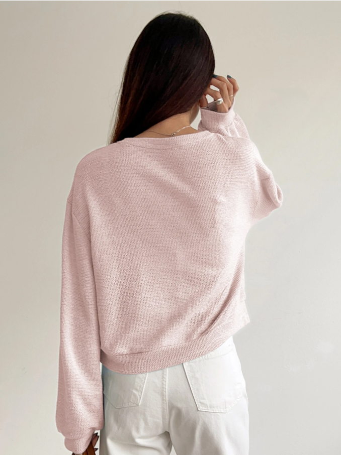 Üstün kaliteli polyester ve ipek karışımından üretilen bu uzun kollu üst, dayanıklılığı lüks ve pürüzsüz bir dokunuşla birleştiriyor. Sade, minimalist tasarımı ve yumuşak bebek pembesi tonu, ister mezuniyet kutlamasına, ister rahat bir hafta sonu gezisine, isterse de evde keyifli bir gün geçirmeye gidiyor olun, her türlü günlük kıyafete zarif bir dokunuş katıyor. Çok yönlü, rahat ve şık olan bu sweatshirt, günlük gardırobunuzu zahmetsizce bir üst seviyeye taşıyor.