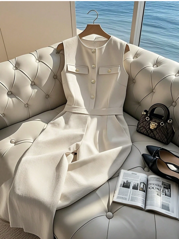 This jumpsuit is fast-fashion jargon overload, using terms like “elegant” and “slim fit” to mask a predictably poor-quality piece. The decorative pockets and metal buttons will feel and look cheap, the synthetic fabric will be unforgiving and lack structure, and the “slim fit” will likely translate to an unflattering, constricting cut.