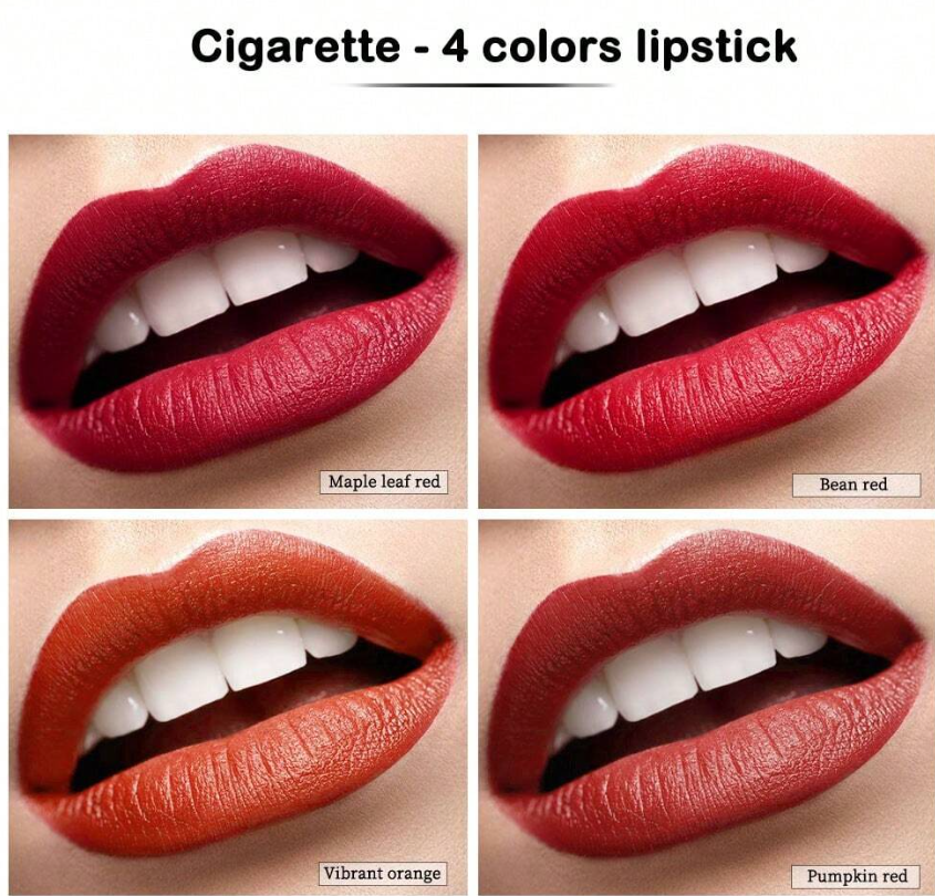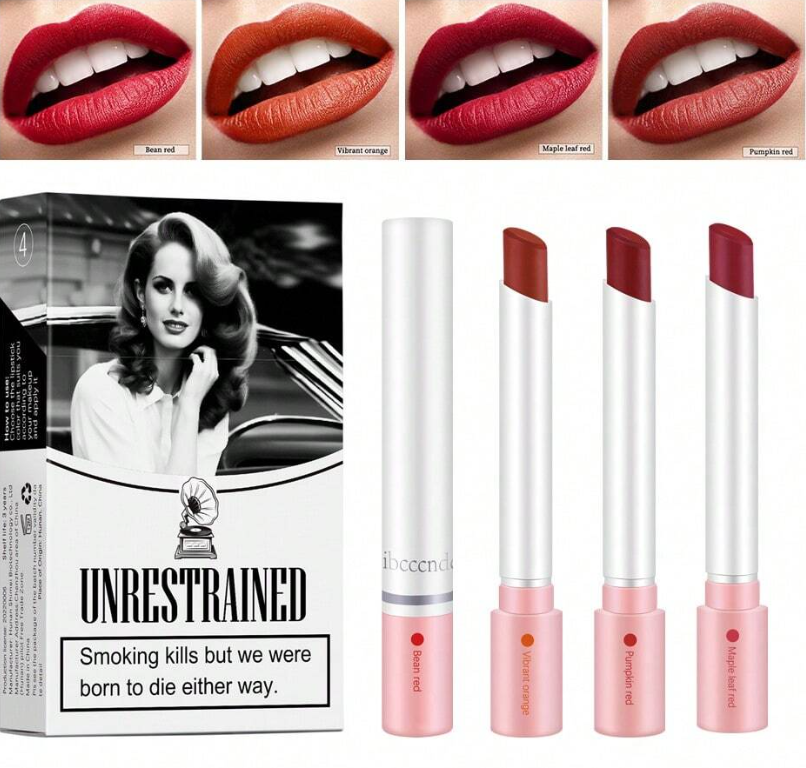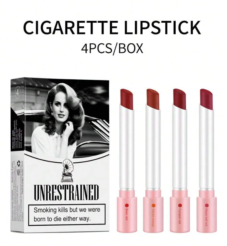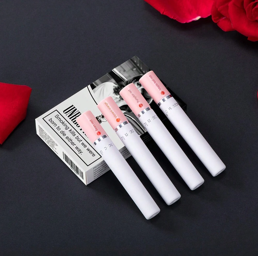 Dudak makyajınızı cesur ve sofistike bir dokunuşla yeniden tanımlayın. ibcccndc Sigara Şeklinde Ruj Seti, Nude, Pembe, Leylak ve Gül olmak üzere dört çarpıcı tonu, hem tutuşu hem de kullanımı şık olan benzersiz, sigara şeklinde bir tüpte sunuyor.