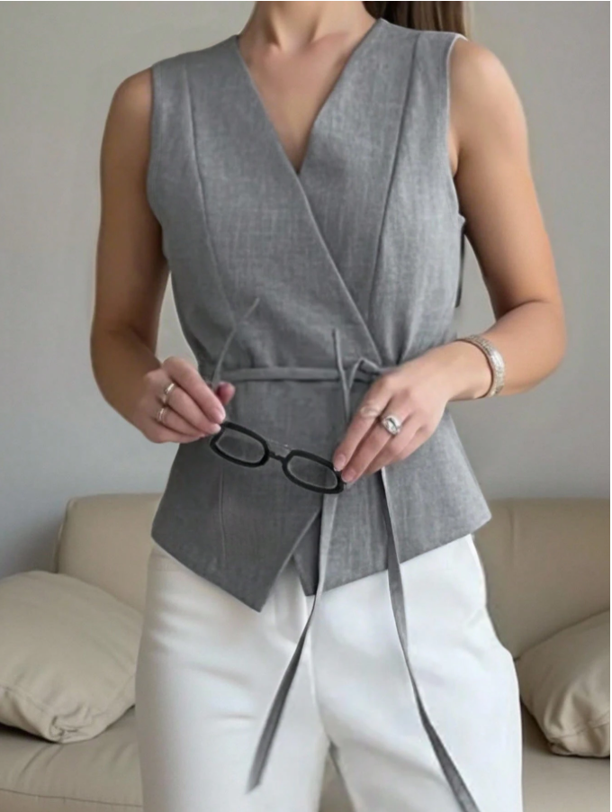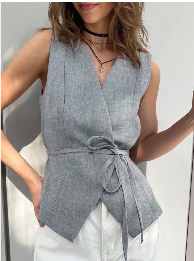 This camisole is fast-fashion minimalism at its most basic and boring. The “solid color” will be a flat, cheap-looking hue on thin, synthetic fabric that offers zero structure or graceful drape. The “tie-up” detail will be a flimsy, non-functional addition that creates awkward bunching rather than flattering shape. It’s a bland, forgettable staple designed to fill a product grid, not a wardrobe, with all the substance and style of a disposable undershirt.