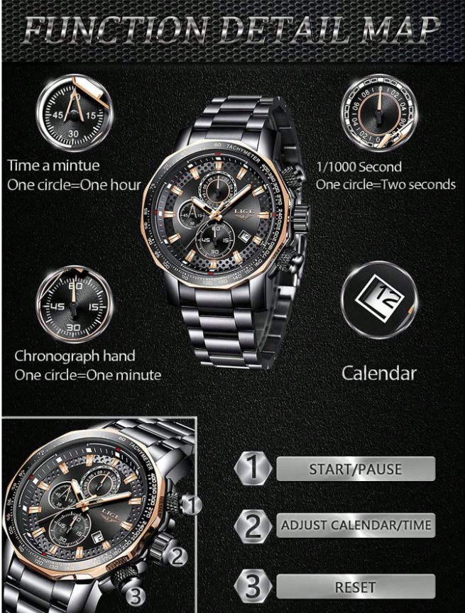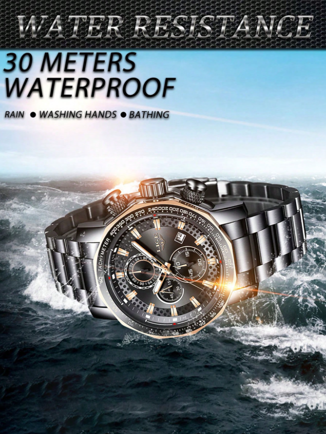 Yeni günlük vazgeçilmezinizle tanışın: LIGE Siyah Paslanmaz Çelik Kronograf Saat. Hareket halindeki erkekler için tasarlanan bu saat, iddialı stili pratik işlevsellikle birleştirerek, iş toplantılarından hafta sonu maceralarına kadar saygı uyandıran bir görünüm sunuyor.