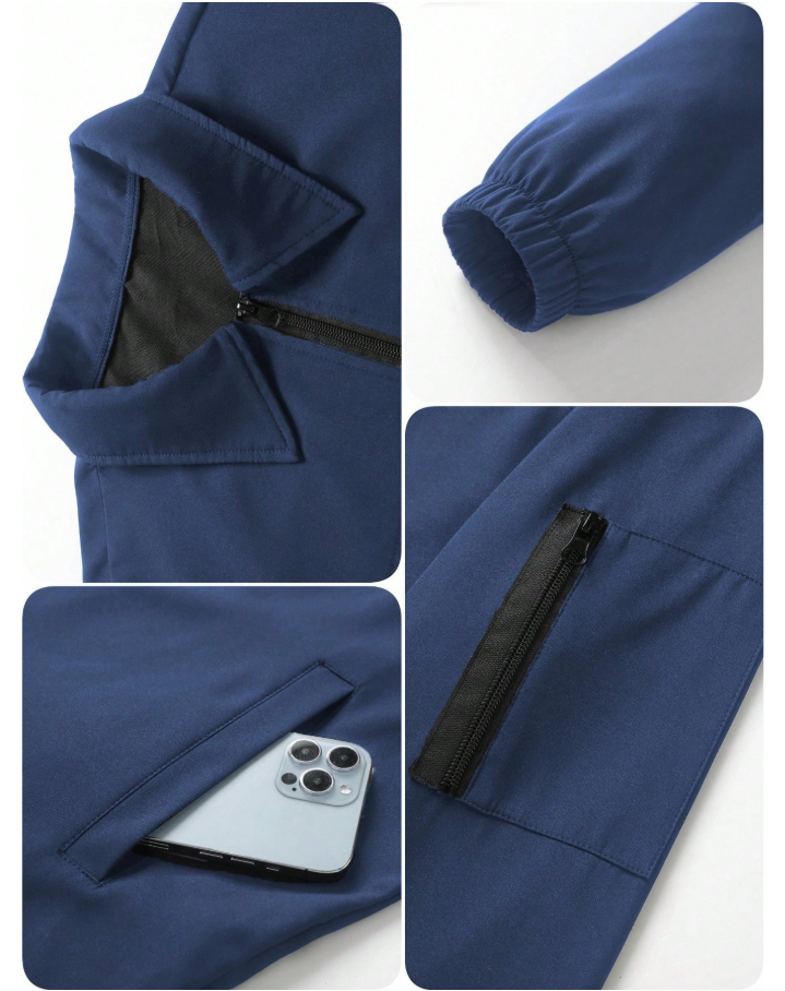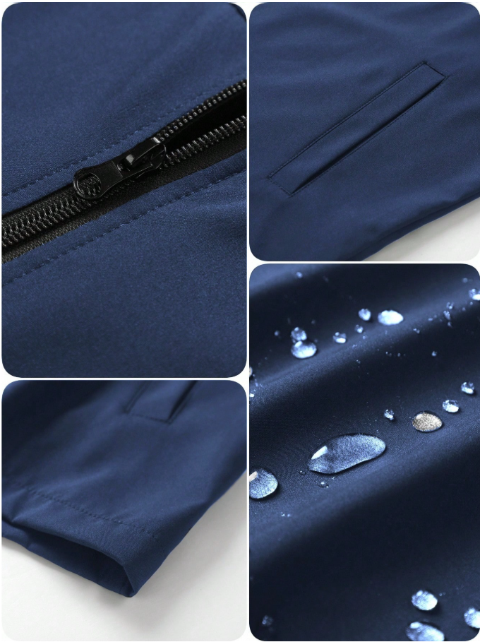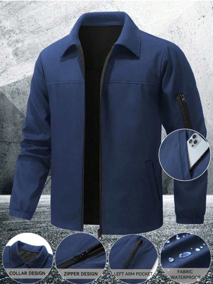 Manfinity Homme Men’s Long Sleeve Casual Solid Color Zip Closure Outdoor Windbreaker Jacket in classic navy blue is designed for both style and performance during the fall season. Crafted from durable, waterproof material, this jacket provides reliable protection against wind and light rain while maintaining a comfortable, lightweight feel. The long sleeves and secure zip closure enhance warmth and coverage, making it perfect for outdoor activities, daily wear, travel, and casual outings. Its solid color and minimalist design allow for easy pairing with jeans, trousers, or activewear.