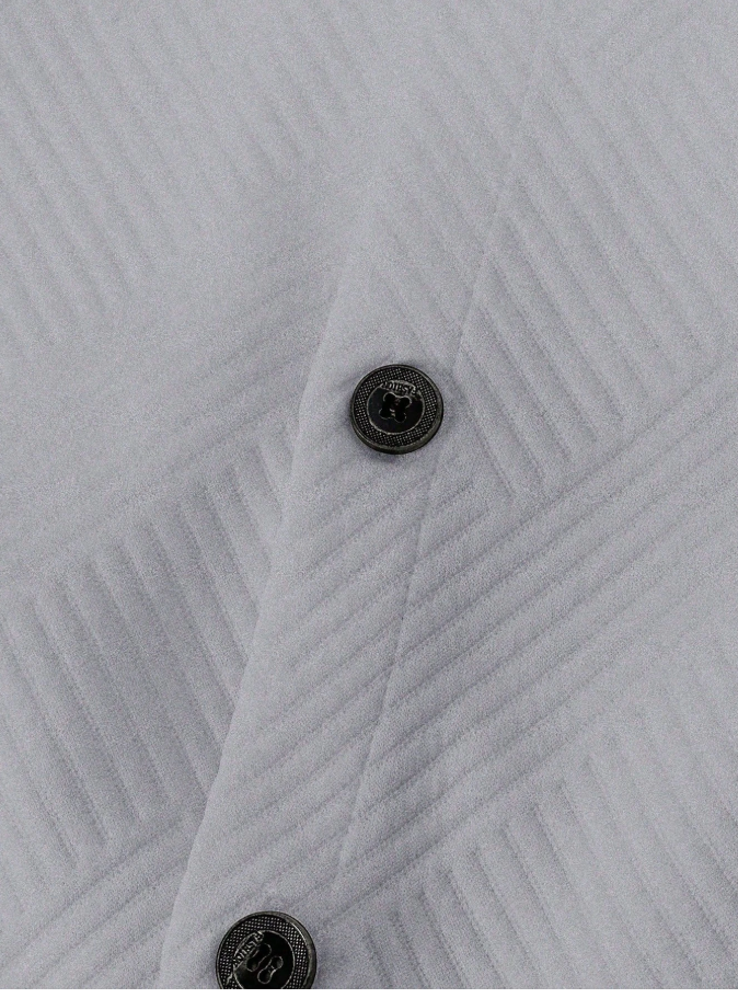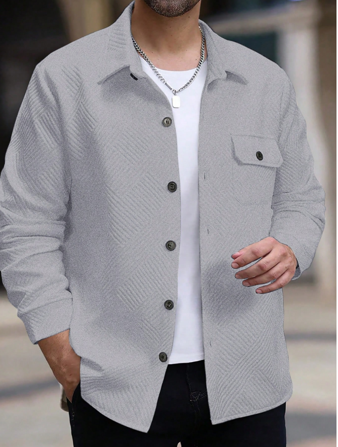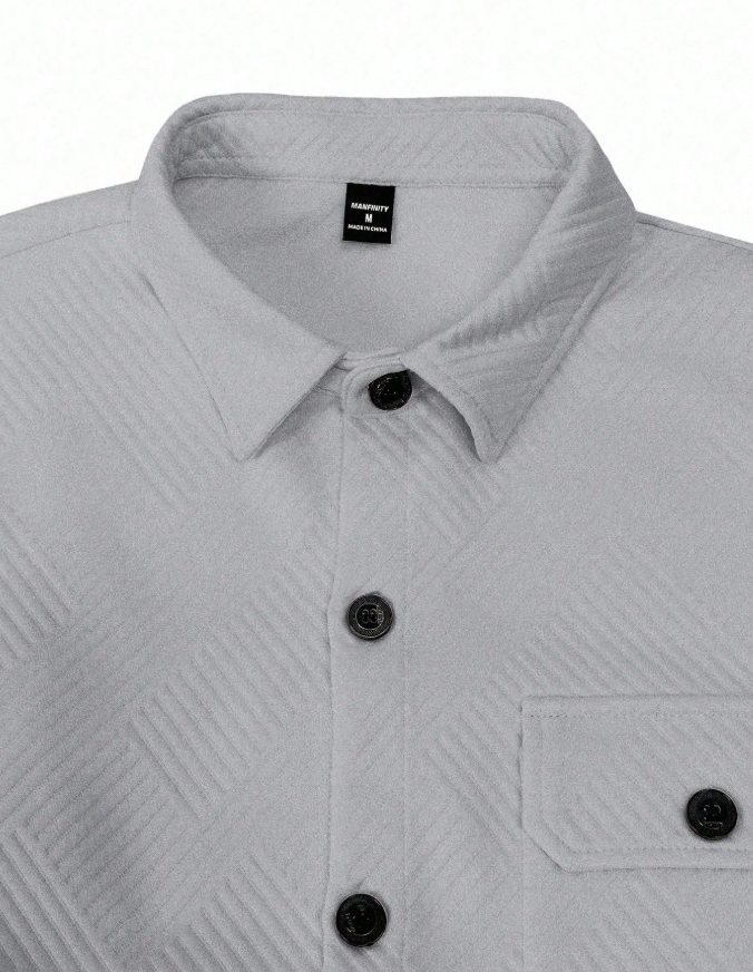 **Manfinity Homme Men’s Solid Color Long Sleeve Single-Breasted Casual Pocket Jacket** is a **textured overshirt** designed for effortless autumn layering. Its single-breasted front and utility pockets add functional style, while the solid color ensures versatile pairing with any wardrobe. Crafted from durable, lightweight fabric, it offers the comfort of a shirt with the warmth of a jacket. Perfect for casual outings or relaxed weekends, this piece delivers modern sophistication and everyday practicality.