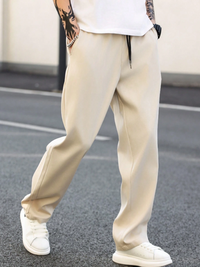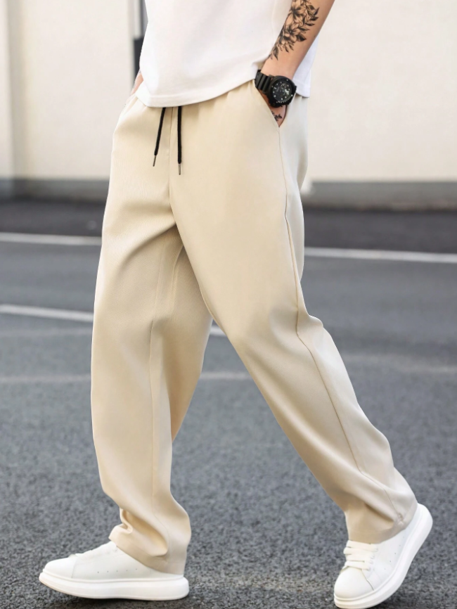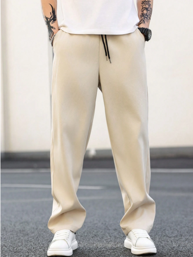 Manfinity Homme Erkek Düz Renk Düz Paça Pantolon, Sade İş Pantolonu, Uzun Daralan Paça, Eş veya Erkek Arkadaş Hediyesi, Sonbahar İçin