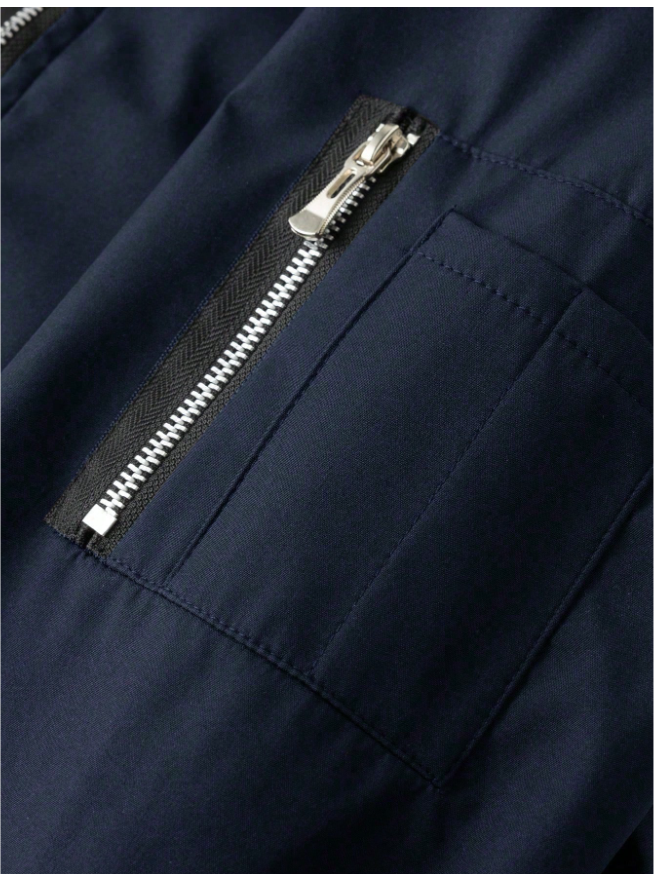 Manfinity Homme Erkek Düz Renk Fermuarlı Uzun Kollu Dış Mekan Rüzgarlık Ceket, Şık Yazlık Günlük Fermuarlı Erkek Bomber Ceket Lacivert Ceket, Sonbahar İçin
