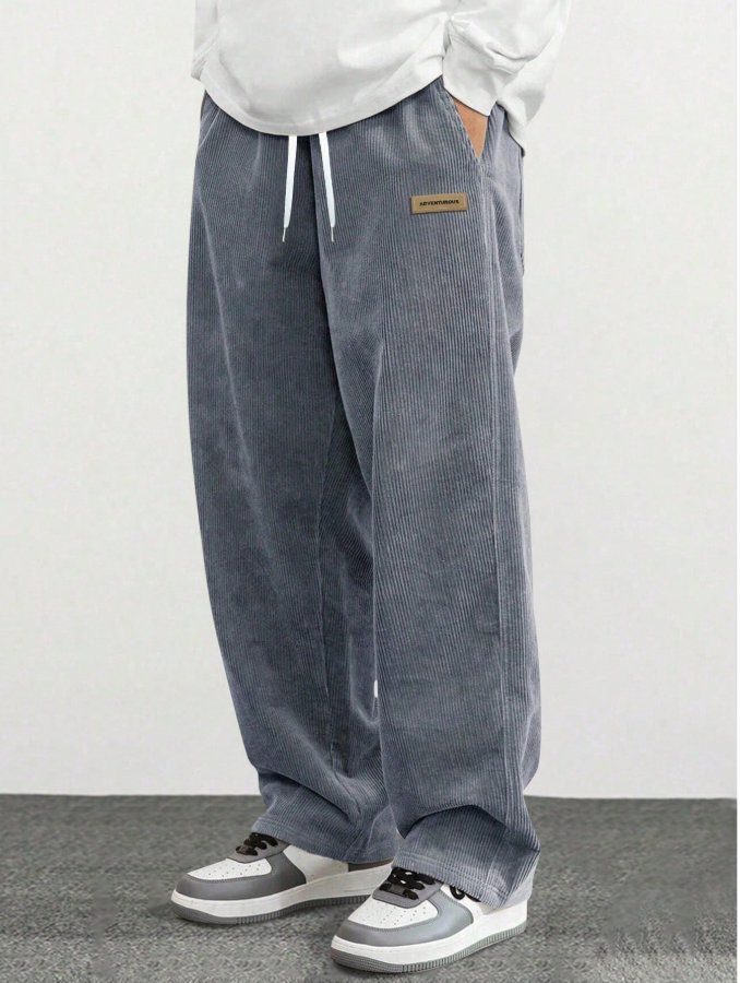 Erkekler için İlkbahar Sonbahar Kadife Kumaştan Üretilmiş, Baskılı Desenli, Bol Kesimli ve Çok Yönlü Günlük Düz Paça Pantolon