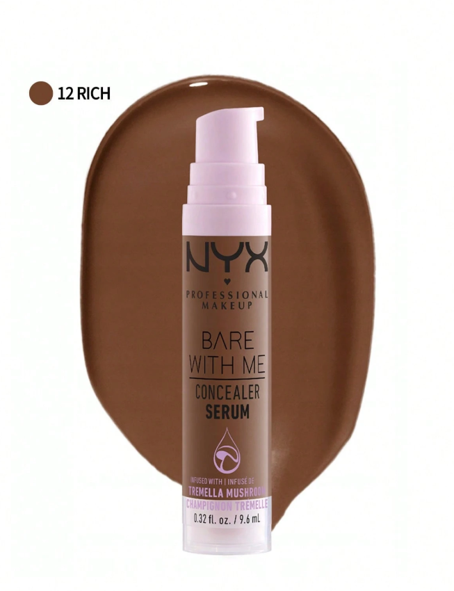 **NYX Bare With Me Concealer Serum in Rich** is a **lightweight, serum-infused formula** that offers buildable coverage for a truly skin-like finish. Its ultra-fluid texture glides on seamlessly to blur imperfections **without settling into fine lines or pores**. Delivering a radiant, **second-skin effect**, it ensures your skin looks perfected, hydrated, and natural all day.