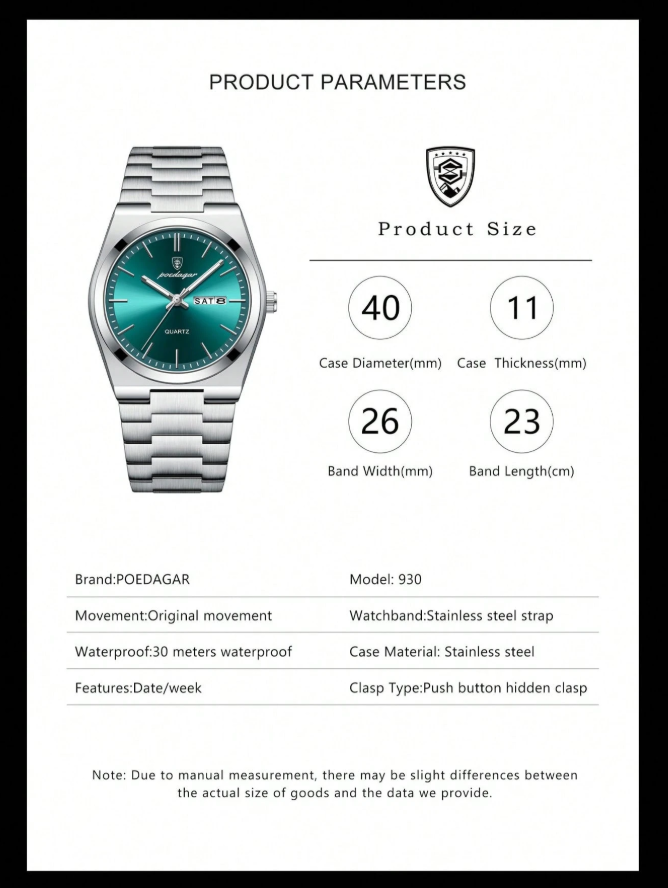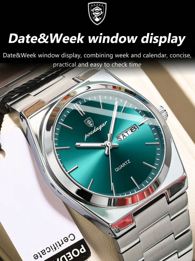 The POEDAGAR Men’s Fashionable Watch is a stylish and durable timepiece designed for everyday wear and business looks. Featuring a waterproof stainless steel build, bright luminous hands for easy viewing at night, and practical date & day display, it combines fashion with function. Perfect for office, travel, casual outings, and daily use, this watch adds a confident and modern touch to any outfit.