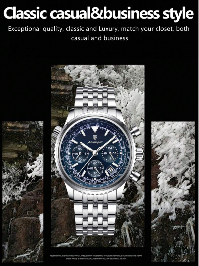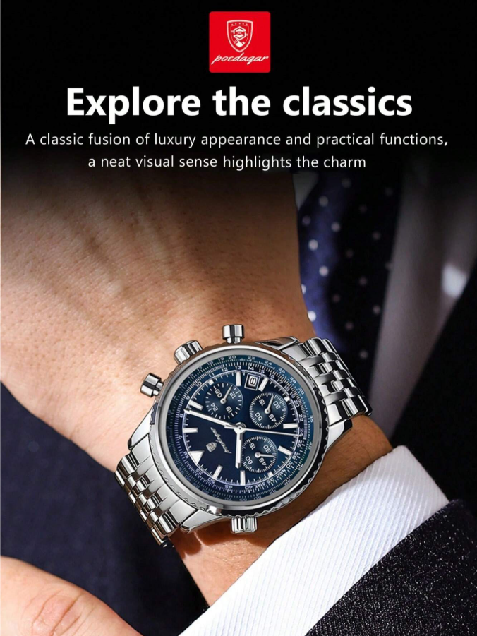 The POEDAGAR Men’s Fashionable Quartz Watch is a stylish and reliable timepiece perfect for both business and casual wear. Featuring a durable stainless steel design, accurate quartz movement, and a convenient multi-function date display, it combines elegance with everyday practicality. Ideal for office, meetings, travel, and daily use, this watch adds a confident and modern touch to any outfit.