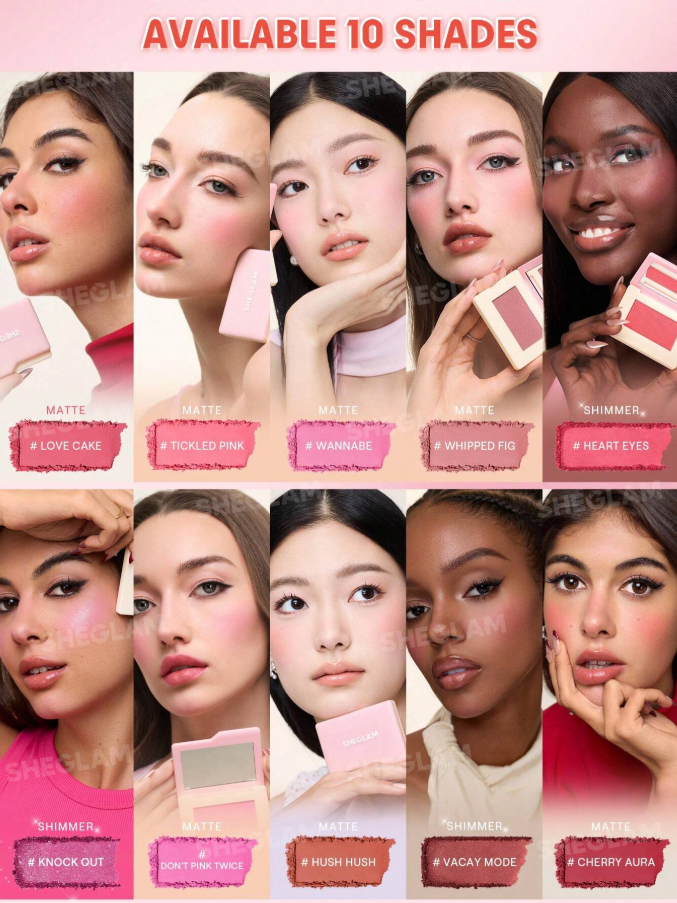 **SHEGLAM Dream Touch Blush in Love Cake** delivers a **weightless, watercolor-soft flush**. This **universally flattering terracotta-pink powder** blends seamlessly for a natural, second-skin finish. Its **buildable formula** provides a healthy, sun-kissed glow that lasts. The perfect touch for a **dreamy, romantic complexion** every day.