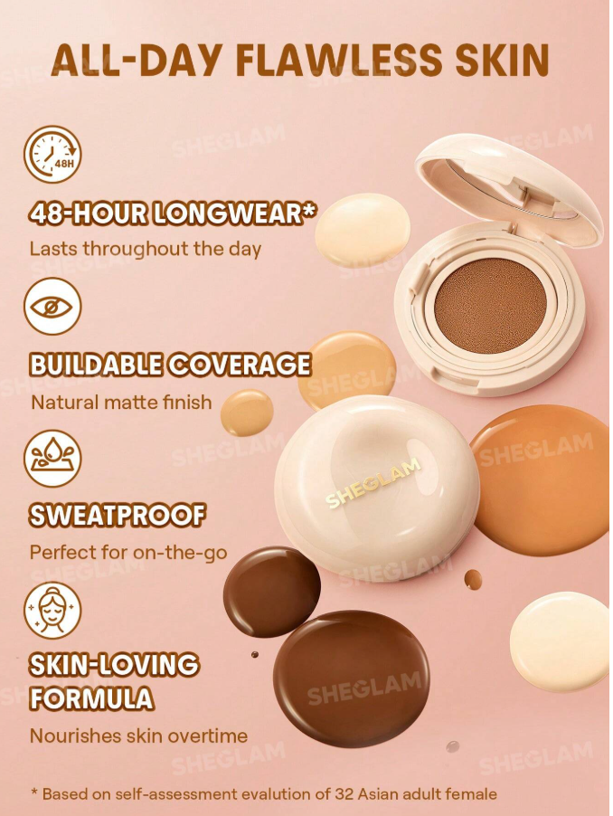The SHEGLAM Lock & Go Long-Lasting Cushion Foundation (Porcelain) provides smooth, lightweight coverage with a fresh, flawless finish. Designed for long wear, it helps even out skin tone and create a natural-looking complexion that stays comfortable throughout the day. Easy to apply and perfect for quick touch-ups, this cushion foundation is ideal for everyday makeup and on-the-go beauty.