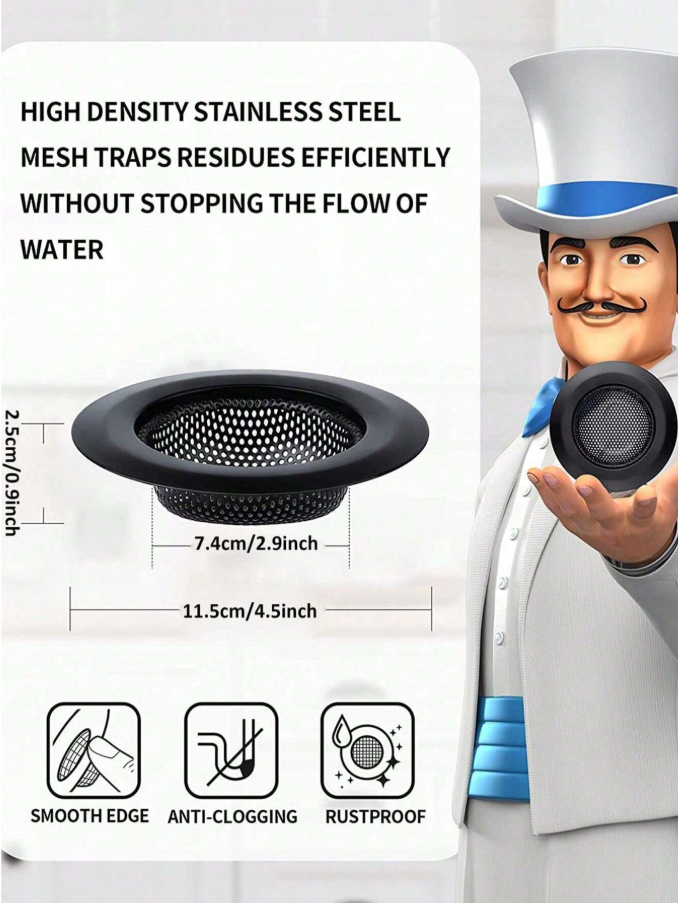 Keep your kitchen sink clean and clog-free with this SHEIN 2-in-1 black round drain strainer and stopper, crafted from durable stainless steel for long-lasting use. The hollow design effectively catches food debris while allowing water to flow freely, preventing blockages and unpleasant odors. Use it as a strainer during food prep or flip it to seal the drain when soaking dishes. This versatile, easy-to-clean essential combines functionality with sleek, modern style for any kitchen.